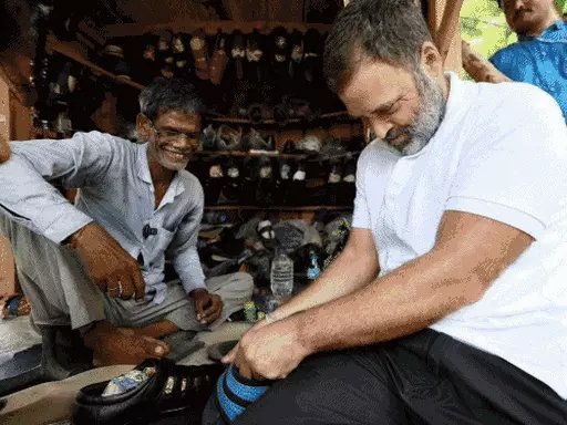 राहुल ने मोची से पूछा कि जूते कैसे बनाते हैं? खर्च के बारे में भी जानकारी ली।