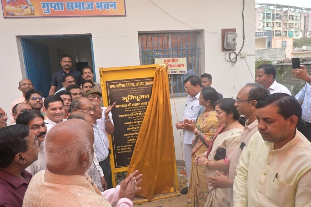 मंत्री देवांगन के मुख्य अतिथ्य तथा नगर पालिक निगम कोरबा की महापौर श्रीमती संजूदेवी की अध्यक्षता में हुआ सामुदायिक भवन का भूमि पूजन