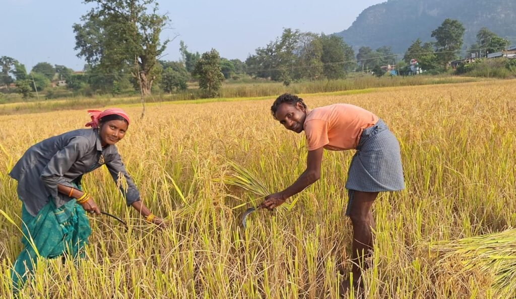 फसल कटाई करने के साथ किसान दम्पति में बना खुशियों का वातावरण