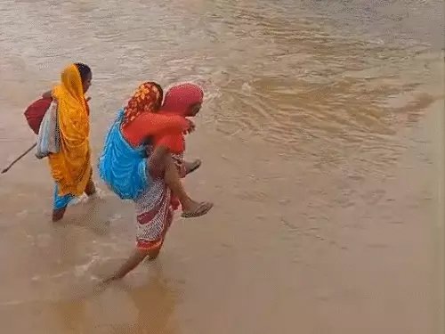 एक महिला ने नवजात को हाथ में पकड़ा, मितानिन ने संगीता बाई को पीठ पर लादा फिर नदी पार कर कच्चे रास्ते से होते हुए तीनों नदी पार कर गए। बता दें कि मितानिन बिफनी बाई ग्राम पंचायत सोनक्यारी की रहने वाली है।