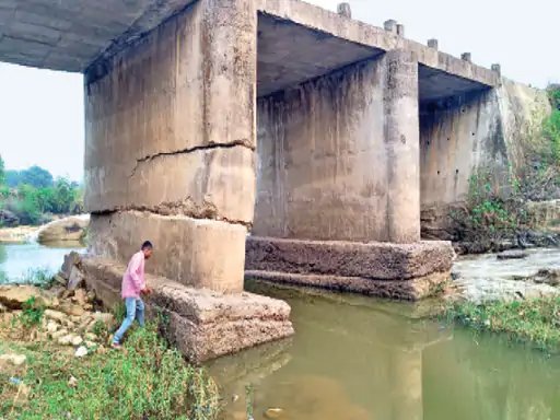 इसका निर्माण 10 साल पहले हुआ था। खदान क्षेत्र होने के कारण 12 टन क्षमता वाले पुल पर 50 से 60 टन वाले वाहन दौड़ रहे थे। इस वजह से समय से पहले ही पुलिया और पुल क्षतिग्रस्त हो गया है। इस मार्ग पर ग्रामीण आवाजाही अभी भी कर रहे हैं। भारी वाहन चलने से कभी भी यह नीचे गिर सकता है।