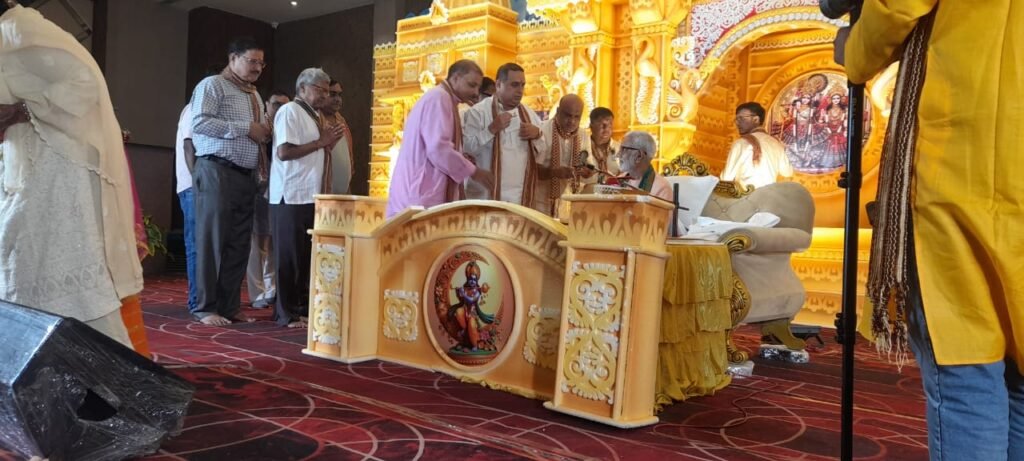 श्रीमद्भागवत कथा आयोजन के चौथे दिन छत्तीसगढ़ विधानसभा में पूर्व नेता प्रतिपक्ष नारायण चंदेल जश्न रिसोर्ट पहुंचकर भगवान श्रीकृष्ण की बाल सुलभ कथाओं का श्रवण किया एवं भगवान बालकृष्ण की झांकी का आनंद उठाते हुए पूजा-अर्चना की और भागवत कथा वाचक एवं जीवन प्रबंधन गुरू पंडित विजय शंकर मेहता का आशीर्वाद लिया। उनके साथ पूर्व महापौर जोगेश लाम्बा, पूर्व जिला भाजपा अध्यक्ष अशोक चावलानी, सुशील गर्ग, बलराम विश्वकर्मा, अजय चंद्रा, ज्योति वर्मा, धनश्री साहू सहित अन्य भाजपा नेता उपस्थित थे। मातनहेलिया परिवार की ओर से राजकुमार अग्रवाल, दिनेश अग्रवाल, विकास अग्रवाल, पंकज अग्रवाल ने नारायण चंदेल का स्वागत किया।