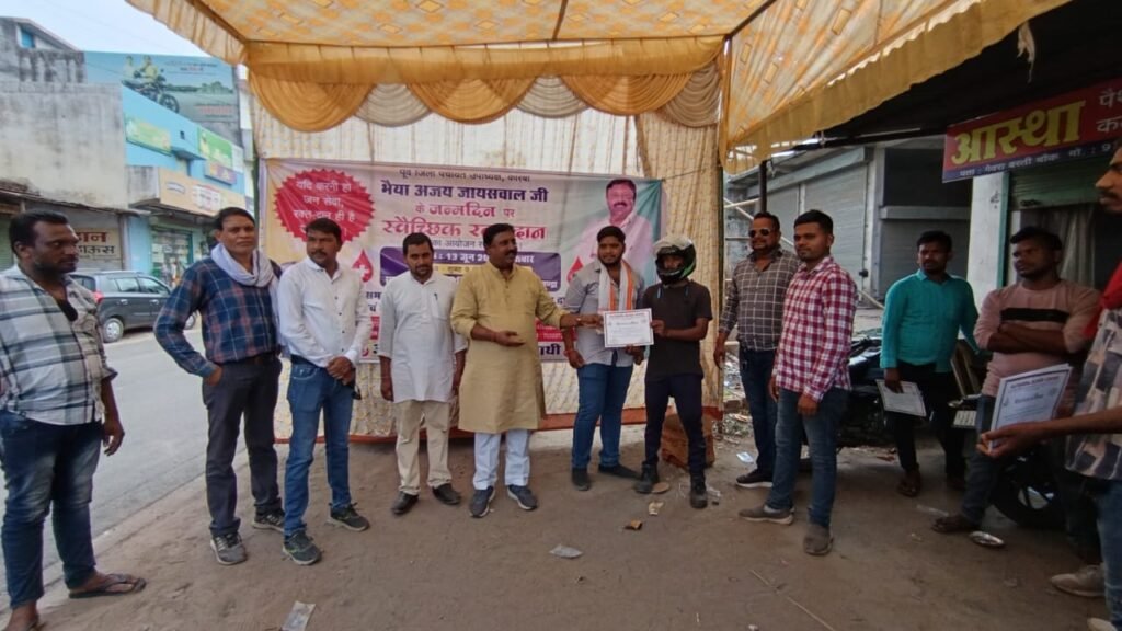 अजय जायसवाल के पास युवाओं की जबरदस्त टोली है और इन युवाओं में जोश भी है। अपने नेतृत्वकर्ता अजय जायसवाल के जन्मदिन को युवा कार्यकर्ताओं ने खास बना दिया और गेवरा बस्ती में वृहद रक्तदान शिविर में रक्तदान कर सामाजिक सरोकार का संदेश दिया। अजय जायसवाल ने पहले इन रक्तदाताओं का स्वागत किया। युवा कार्यकर्ताओं ने रक्तदान किया। रक्तदान करने के बाद अजय जायसवाल ने सभी साथियों का आभार जताया और कहा कि युवा ही समाज की दिशा और दशा बदलने में सक्षम हैं। उन्होंने सभी रक्तदाताओं को जूस पिलाया, फल खिलाया और हेलमेट एवं प्रमाण पत्र देकर सबका सम्मान किया। उसके बाद गेवरा बस्ती स्थित अजय जायसवाल के कार्यालय में सभी युवाओं ने केक काटा और जमकर खुशियां मनायी। इस जन्मोत्सव कार्यक्रम में आसपास के ग्रामीण भी बड़ी संख्या में उपस्थित थे।
