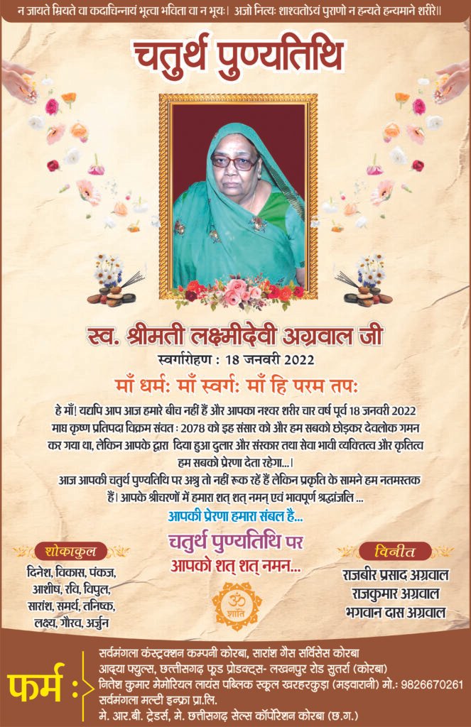 कोरबा2 years agoश्रीमती स्वाति दुबे का निधन