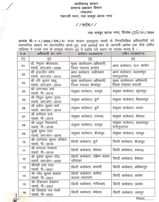 कई जिलों के जॉइंट और डिप्टी कलेक्टर बदले गए, आदेश जारी