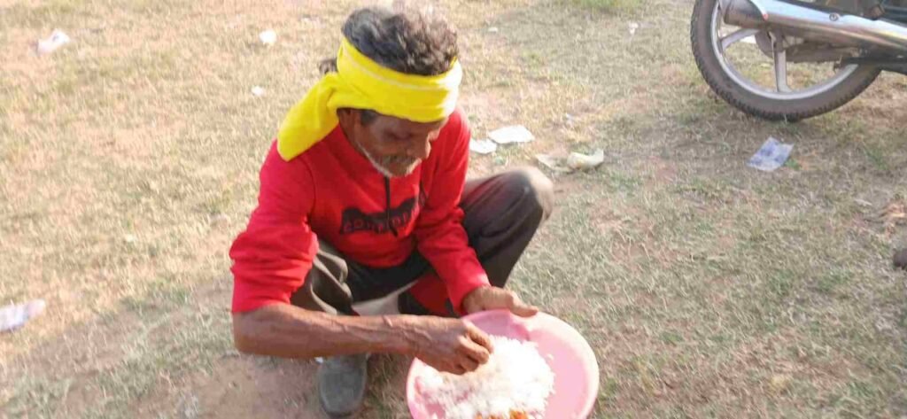 सूखे चावल से भूख मिटाई आदिवासियों ने