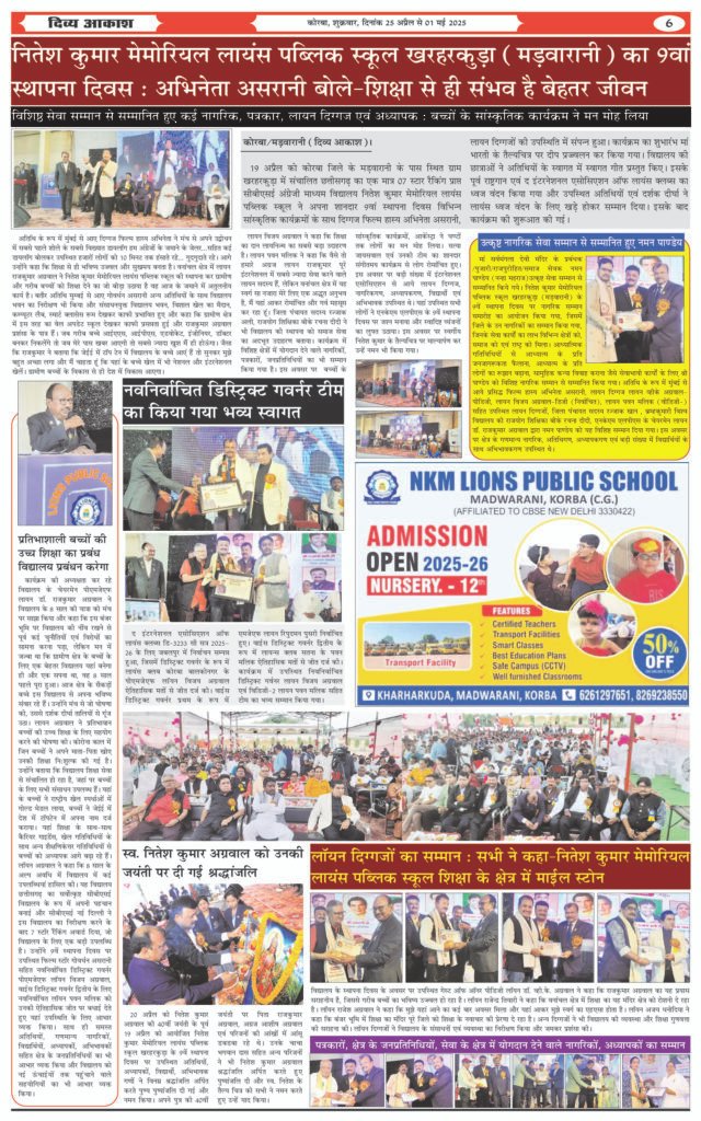 नितेश कुमार मेमोरियल लायंस पब्लिक स्कूल खरहरकुड़ा (मड़वारानी) के डायरेक्टर पीएमजेएफ लायन डॉ. राजकुमार अग्रवाल ने स्वर्गीय श्री गोवर्धन असरानी को विनम्र श्रद्धांजलि दी और कहा कि बॉलीवुड में उनके जैसा हास्य कलाकार कोई नहीं। उनकी उत्कृष्टता हमने विद्यालय में आयोजित समारोह में देखी। उनकी यादें हमेशा हमारे दिलों में रहेगी। उन्होंने हमें हसने के कारण दिए, लेकिन 20 अक्टूबर को आंखें नम कर गए। उनका व्यक्तित्व विशाल था। उन्होंने विद्यालय का निरीक्षण भी किया था और कहा था- शिक्षा से बड़ा महादान कुछ भी नहीं। आप गरीब बच्चों का भविष्य उज्ज्वल कर रहे हैं, जीवन की यह बहुत बड़ी पूंजी है।