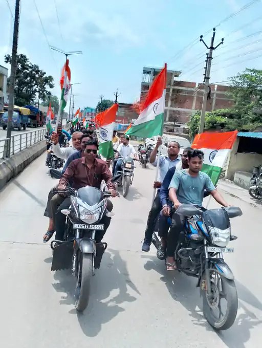 उप अभियंता विद्यानंद मधुकर यादव के नेतृत्व में निकाली गई तिरंगा बाइक रैली पाली रोड, कटघोरा रोड से होते हुए नगर पालिका दफ्तर पहुंचने पर समापन हुआ। ई-रिक्शा में सवार नगर के सफाई कर्मियों ने तिरंगा बाइक रैली में शामिल हुए। उक्त रैली स्वतंत्रता का उत्सव, स्वच्छता के संग थीम पर आधारित रहा। लोगों को स्वच्छता के प्रति जागरूक करने के साथ तिरंगे के सम्मान का भाव जगाया। इस तरह स्वच्छता व देशभक्ति का अनूठा संगम रहा। रैली में मुकेश दुबे, हेमंत देवांगन, सचिन तेलंग, हेमलाल भारिया, अनय जायसवाल, सरसीज सोनी व आराधना भारिया शामिल रहे। बता दें 15 अगस्त स्वतंत्रता दिवस तक प्रतिदिन अलग-अलग कार्यक्रम का आयोनज किया जाएगा।