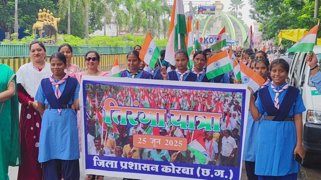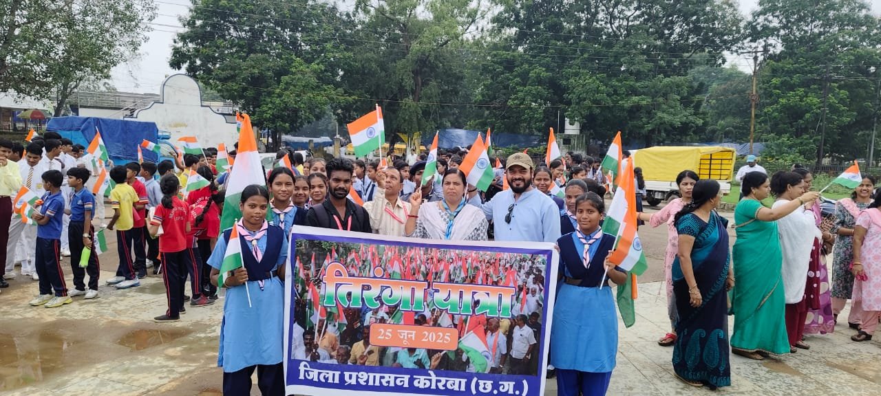 कलेक्टर अजीत वसंत के निर्देशन में लोकतंत्र की हत्या आपातकाल के 50वीं वर्षगांठ पर स्थानीय विद्यालयों के विद्यार्थियों के द्वारा तिरंगा यात्रा रैली निकाली गई। यह रैली डॉ. भीमराव अम्बेडकर ऑडिटोरियम घंटाघर ओपन थियेटर कोरबा से महाराणा प्रताप चौक, बुधवारी होते हुए वापस घंटाघर परिसर में सम्पन्न किया गया। उक्त रैली में स्काउट गाइड एनएसएस, एनसीसी तथा स्थानीय विद्यालयों के विद्यार्थी तथा शिक्षक-शिक्षिकाएं सहित अन्य शामिल हुए। तिरंगा यात्रा रैली को टी. पी. उपाध्याय जिला शिक्षा अधिकारी ने संबोधित करते हुए कहा कि देश में 25 जून 1975 को आपातकाल लागू किया गया था। जिसे संविधान हत्या दिवस के रूप में मनाया जा रहा है। इसी तरह सीनियर क्लब में छायाचित्र प्रदर्शनी एवं संगोष्ठी का आयोजन किया गया। तिरंगा यात्रा रैली में दीनू पटेल जिला खेल अधिकारी, के. आर. टंडन सहायक जिला क्रीड़ा अधिकारी, श्रीमती अल्का फिलिप्स प्राचार्य एनसीडीसी, मानसाय लहरे प्राचार्य पी.डब्लू.डी., रामकृपाल साहू सहायक खेल अधिकारी, सनत कालेलकर, सुमित सिंह, कौशल सोनवानी व्यायाम शिक्षक, गणेशी सोनकर, डिगम्बर सिंह एवं विभिन्न विद्यालय के शिक्षक/शिक्षिका विद्यार्थीगण उपस्थित रहे।