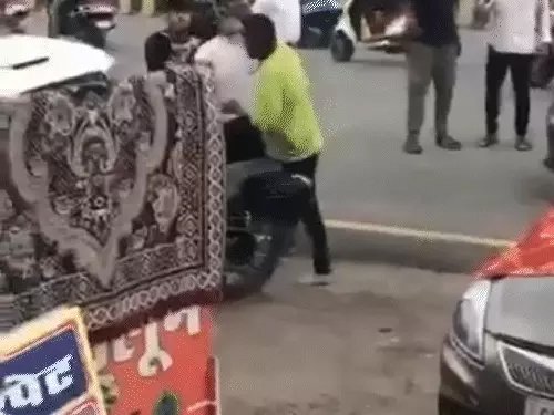 कार सवार युवक ने टीशर्ट फटते तक पीटा