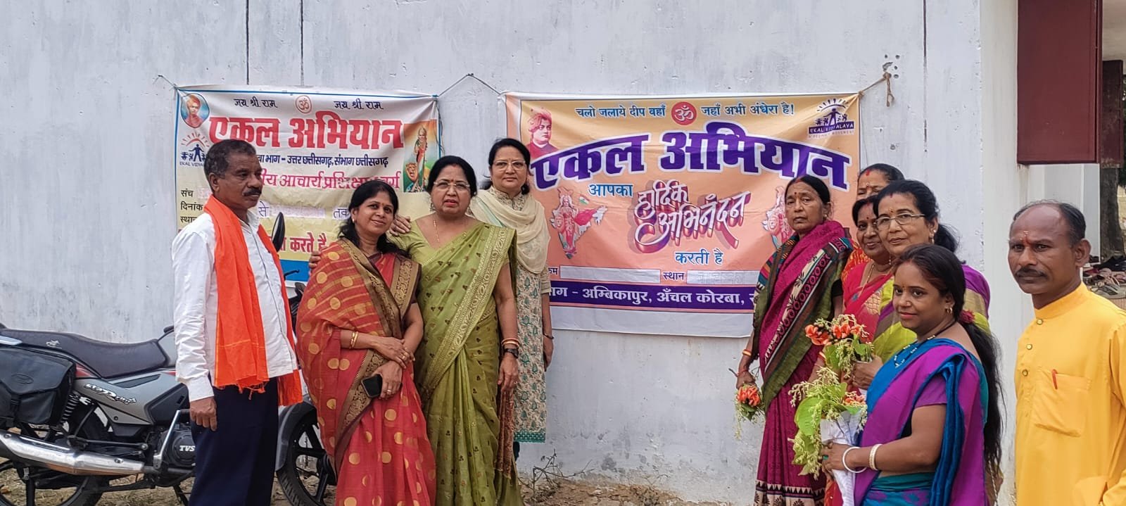 एकल अभियान कोरबा अंचल प्रमुख किताब सिंह पैकरा, कोरबा के एसएसपीएम स्वास्थ्य संरक्षक प्रभारी डॉ. मनीषा सिंह, संचय केन्द्र की मंदाकिनी त्रिपाठी, भोजराम देवांगन, सरपंच रिता कंवर, बिसाहू सिंह, अंजू सिंह, चंद्र कुमार राठिया, सत्यनारायण कंवर, घनश्याम चौहान, सरिता मिश्रा, रूक्मिणी नायर, उमाभारती सराफ,श्रीमती चंद्रिका, श्रीमती उषा तिवारी सहित प्रदेश के महिला कार्यकर्ताओं की उपस्थिति एवं वरिष्ठों के मार्गदर्शन से वनवासी काफी उत्साहित नजर आ रहे थे।