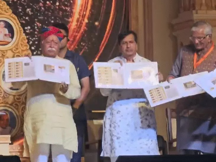 भागवत ने स्मारक सिक्का और डाक टिकट का लोकार्पण किया