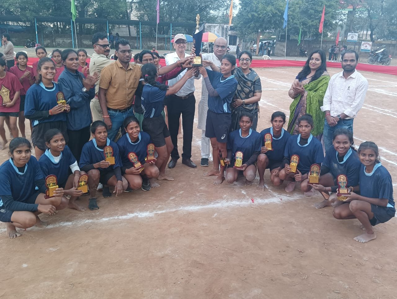 कोरबा मिनीमाता कन्या महाविद्यालय परिसर में स्थित खेल मैदान में आयोजित इस प्रतियोगिता में सभी कॉलेज की छात्राओं ने अपनी प्रतिभाओं का प्रदर्शन किया। दर्शकगण छात्राओं की प्रतिभा देखकर काफी रोमांचित हुए, लेकिन दुर्ग विश्वविद्यालय की छात्राओं ने सबसे बेहतर प्रदर्शन किया और विजेता का खिताब अपने नाम किया और अतिथियों ने उन्हें विजेता का शील्ड प्रदान किया। उपविजेता के रूप में रायपुर विश्वविद्यालय को पुरस्कृत किया गया। कार्यक्रम में बतौर मुख्य अतिथि जनभागीदारी समिति की अध्यक्ष श्रीमती आरती अग्रवाल, विशिष्ट अतिथि पूर्व पार्षद एवं समाज सेवी विकास अग्रवाल, प्राचार्य डॉ. राजेंद्र सिंह, क्रीड़ा अधिकारी अनिमा तिर्की सहित सदस्यों ने खिलाडिय़ों का सम्मान किया।