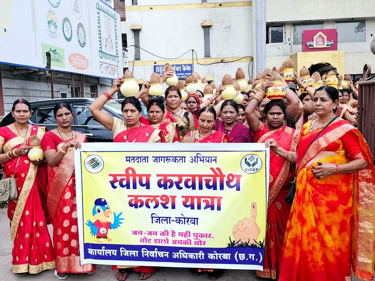 कलश यात्रा एवं स्वीप करवाचौथ कार्यक्रम के माध्यम से मतदाताओं को किया गया जागरूक