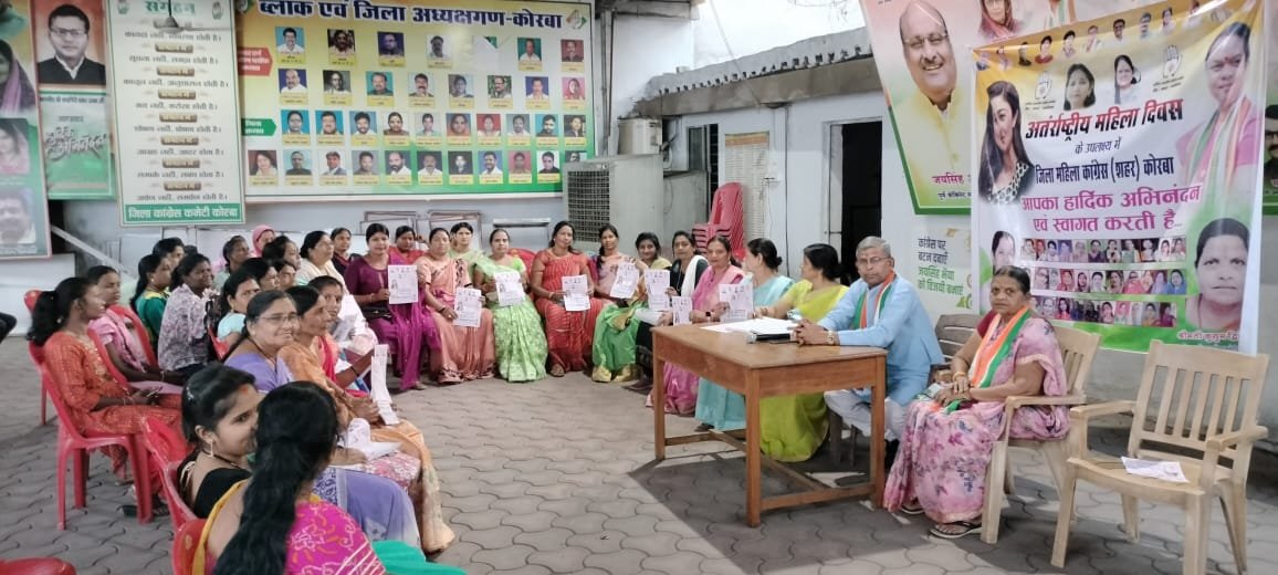 कोरबा। अंतर्राष्ट्रीय महिला दिवस के उपलक्ष्य में राष्ट्रीय अध्यक्ष अलका लांबा एवं प्रदेश अध्यक्ष फूलो देवी नेताम के आदेशानुसार महिला दिवस एवं नारी न्याय का कार्यक्रम पूर्व केबिनेट मंत्री जयसिंह अग्रवाल के निर्देश पर महापौर राजकिशोर किशोर प्रसाद की अध्यक्षता में महिला दिवस का कार्यक्रम कांग्रेस कार्यालय कोरबा में आयोजित किया गया।