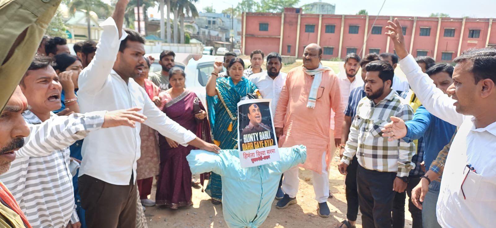 प्रदर्शन के दौरान पूर्व मंत्री जयसिंह अग्रवाल ने असम के मुख्य मंत्री हिमंत बिस्वा सरमा द्वारा कांग्रेस अध्यक्ष मल्लिकार्जून खड़गे के खिलाफ की गई अपमानजनक भाषा के प्रयोग के लिए कड़ी निंदा की है । श्री अग्रवाल ने इस बयान को शर्मनाक बताया है । प्रदेश कांग्रेस कमेटी सचिव विकास सिंह ने कहा कि बिस्वा घबरा गये हैं और डर के कारण कांग्रेस नेताओं को डराने की कोशिश कर रहे हैं ।