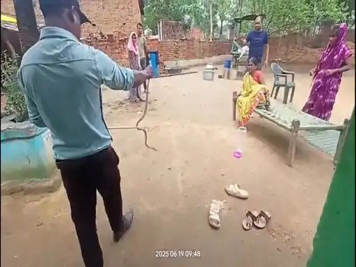 जिस कमरे में गोपी को सांप ने काटा था, उसी कमरे में अगले दिन सुबह तक नजर रखी गई। परिजनों ने जैसे ही सांप को कमरे से निकलते देखा, हिम्मत दिखाकर परिजनों ने उसे एक टोकरी में ढककर ऊपर पत्थर रख दिया। इसके बाद “नोवा नेचर” की टीम को सूचना दी गई। सुबह करीब 9 बजे रेस्क्यू टीम ने पहुंचकर लगभग 4 फीट लंबे करैत सांप को सुरक्षित पकड़कर जंगल में छोड़ दिया।